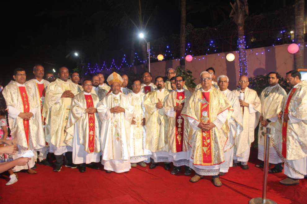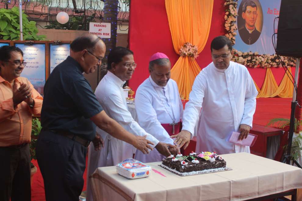 Archbishop Peter Machado, along with other Fathers, cutting the Birthday Anniversary cake.