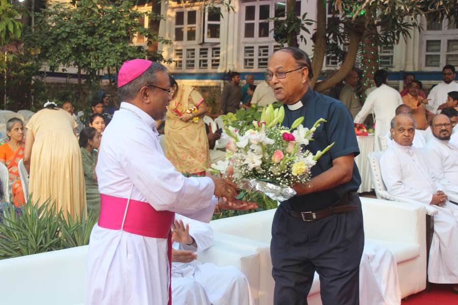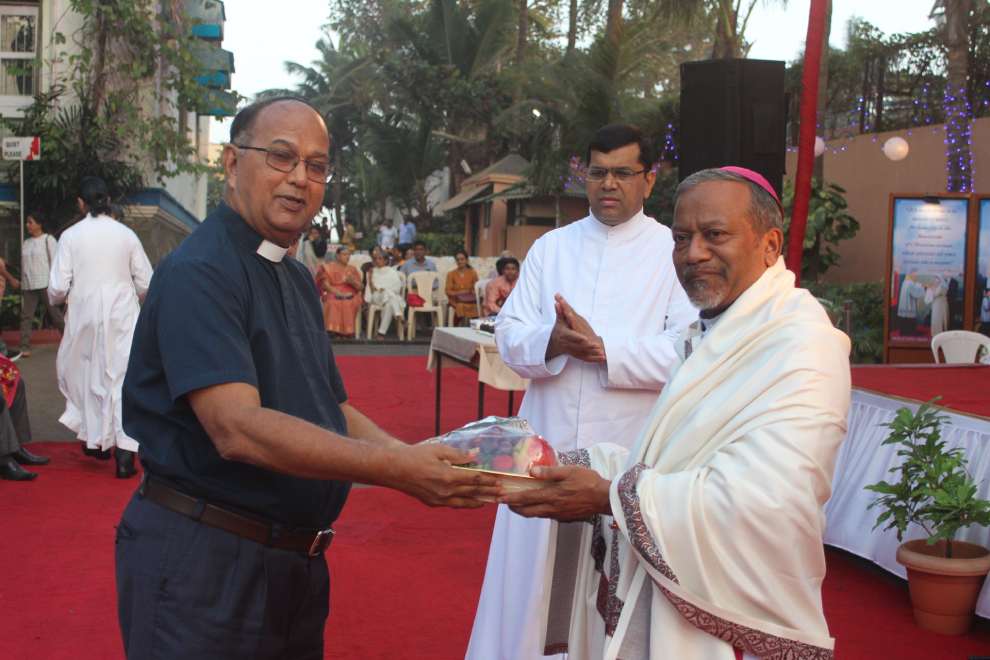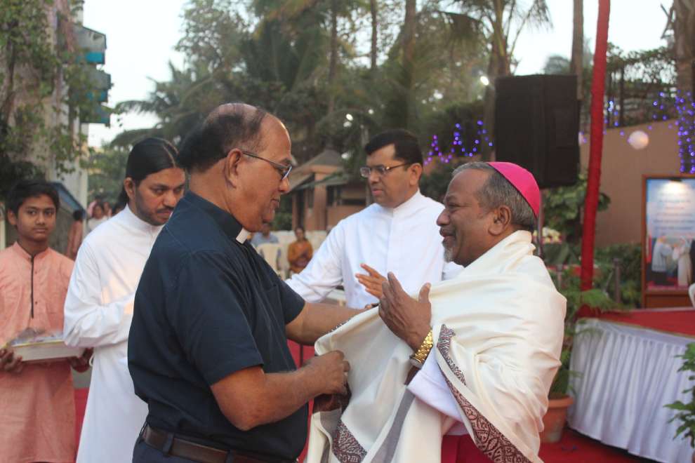 Rev. Fr. Saturino Almeida presenting a shawl to the Archbishop.