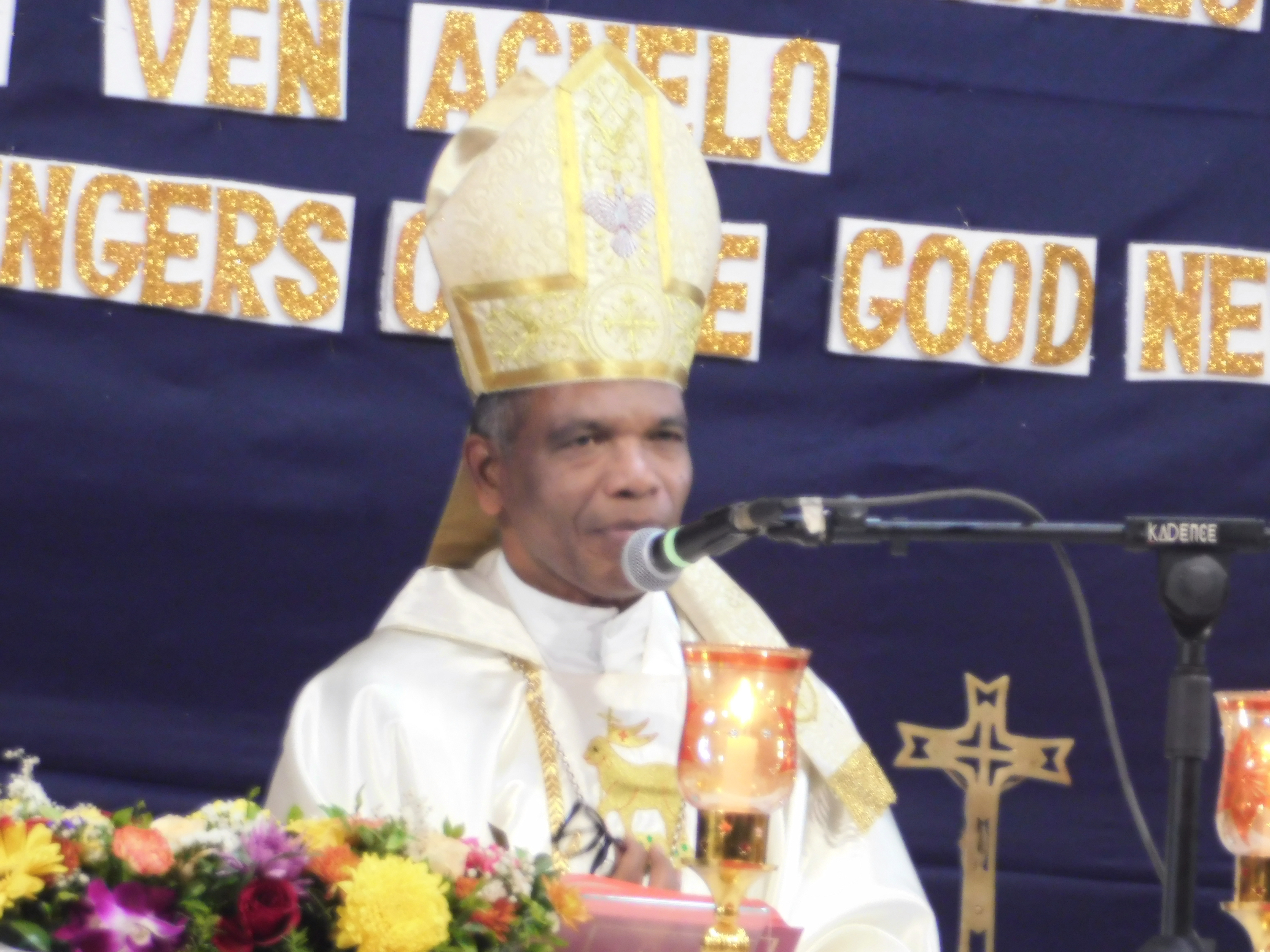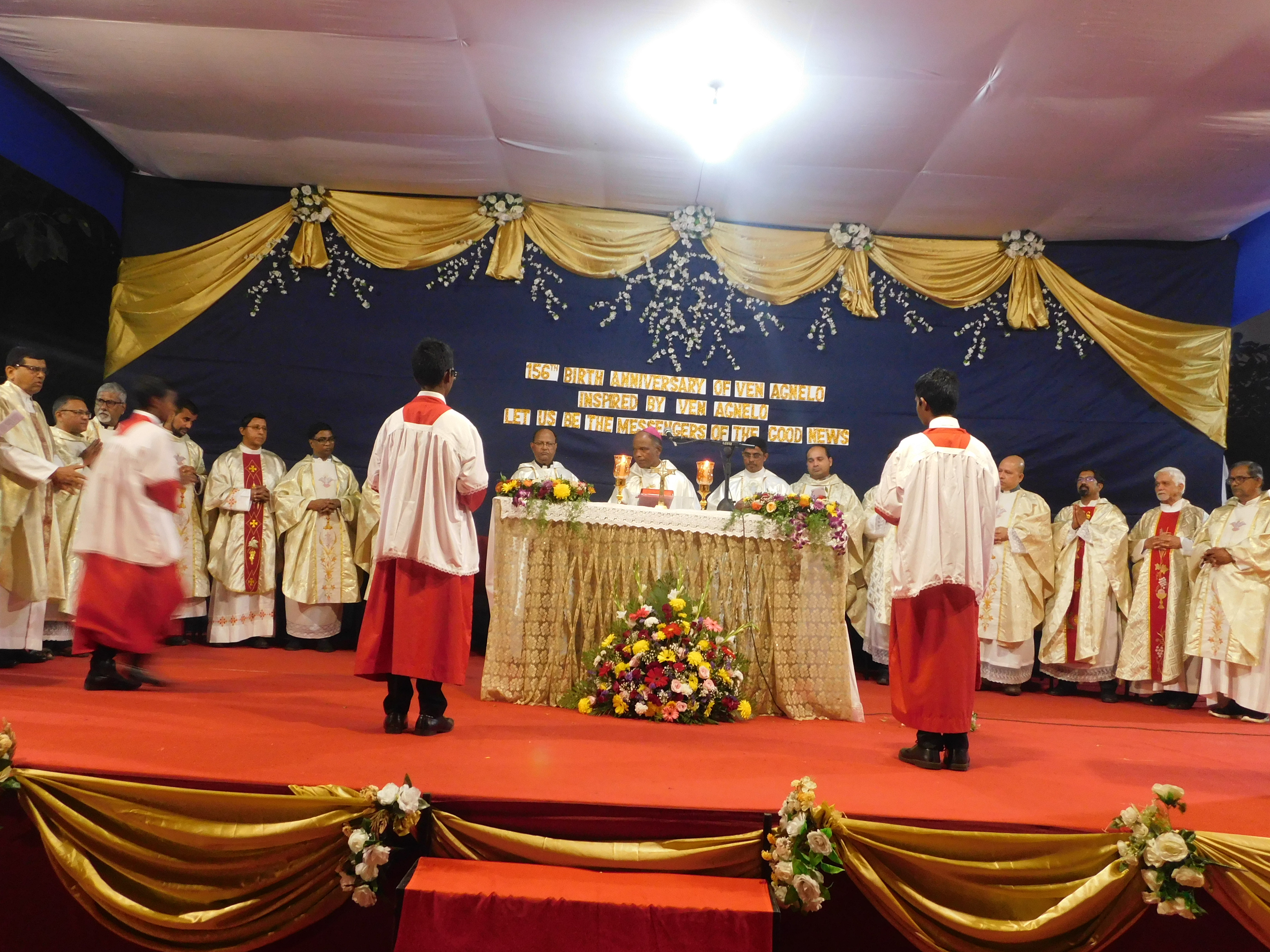 Most Rev. Rethna Swamy, Bishop of Ahmedabad, celebrating Mass with other priests.